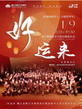 《好运来》籁之音歌行合唱团流行歌曲新年合唱音乐会时间:2026.01.09 周五 19:30场馆:北京市 | 北京音乐厅 票价:100/180/280/380/480/680微信订票:18515362586电话订票:010-66552100,010-66552258